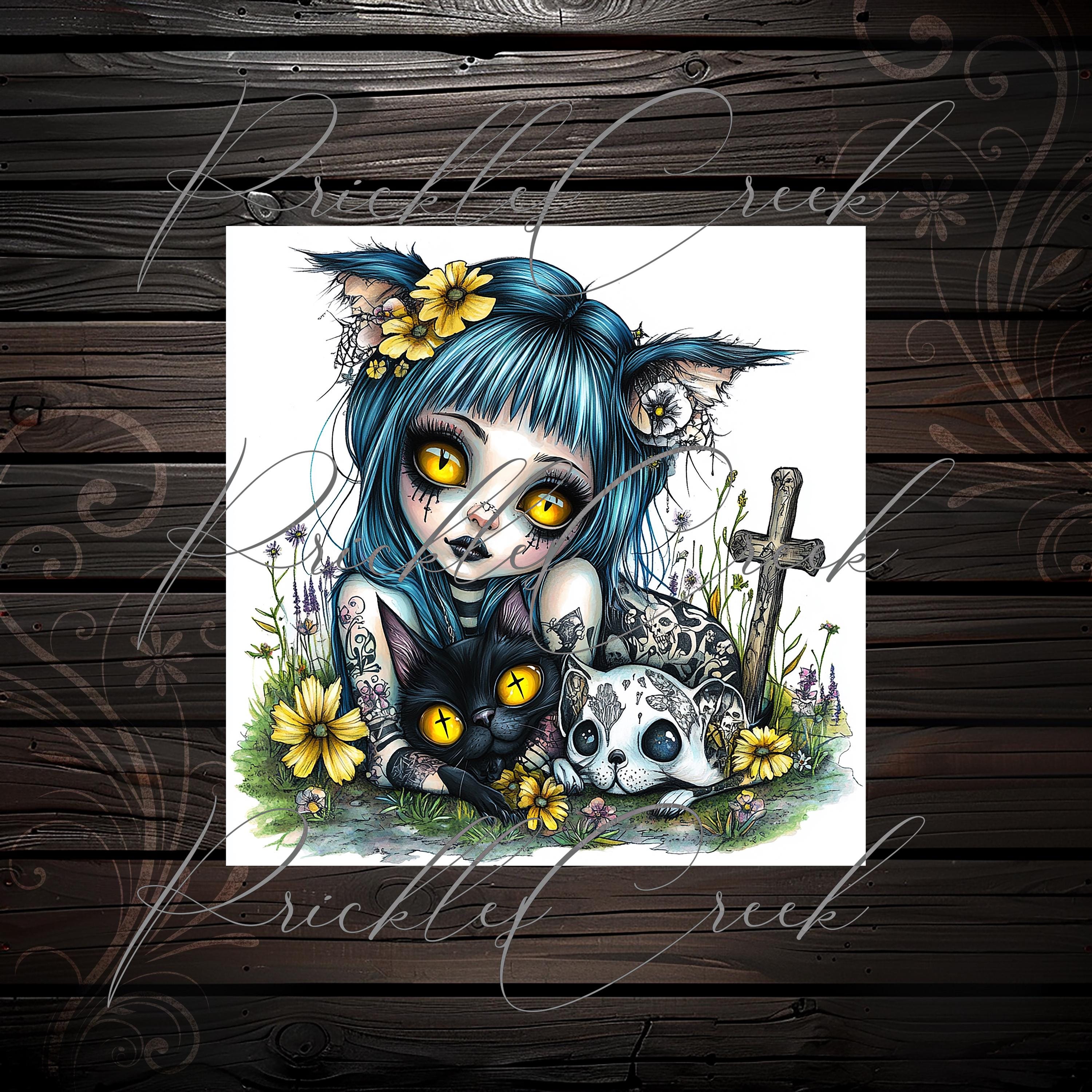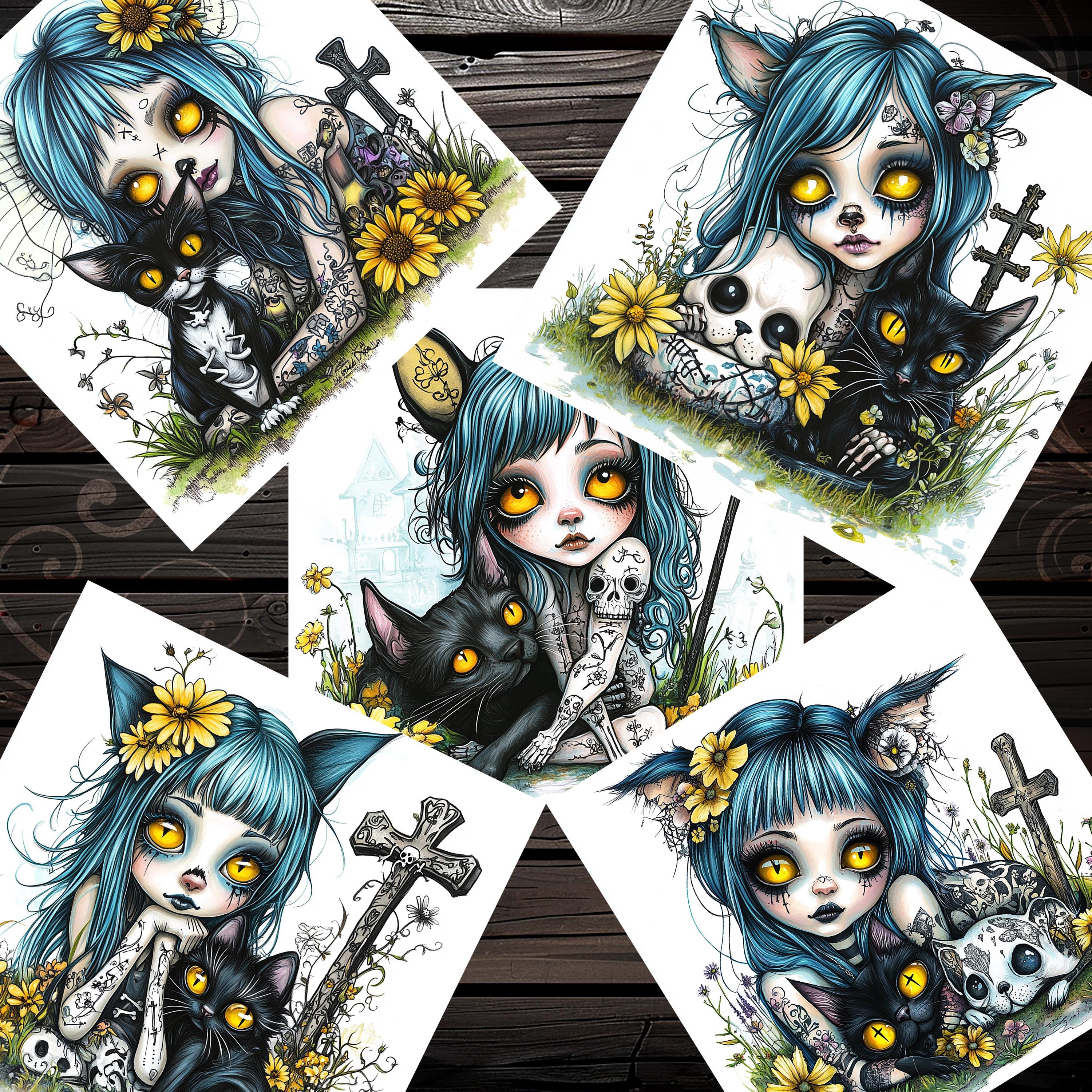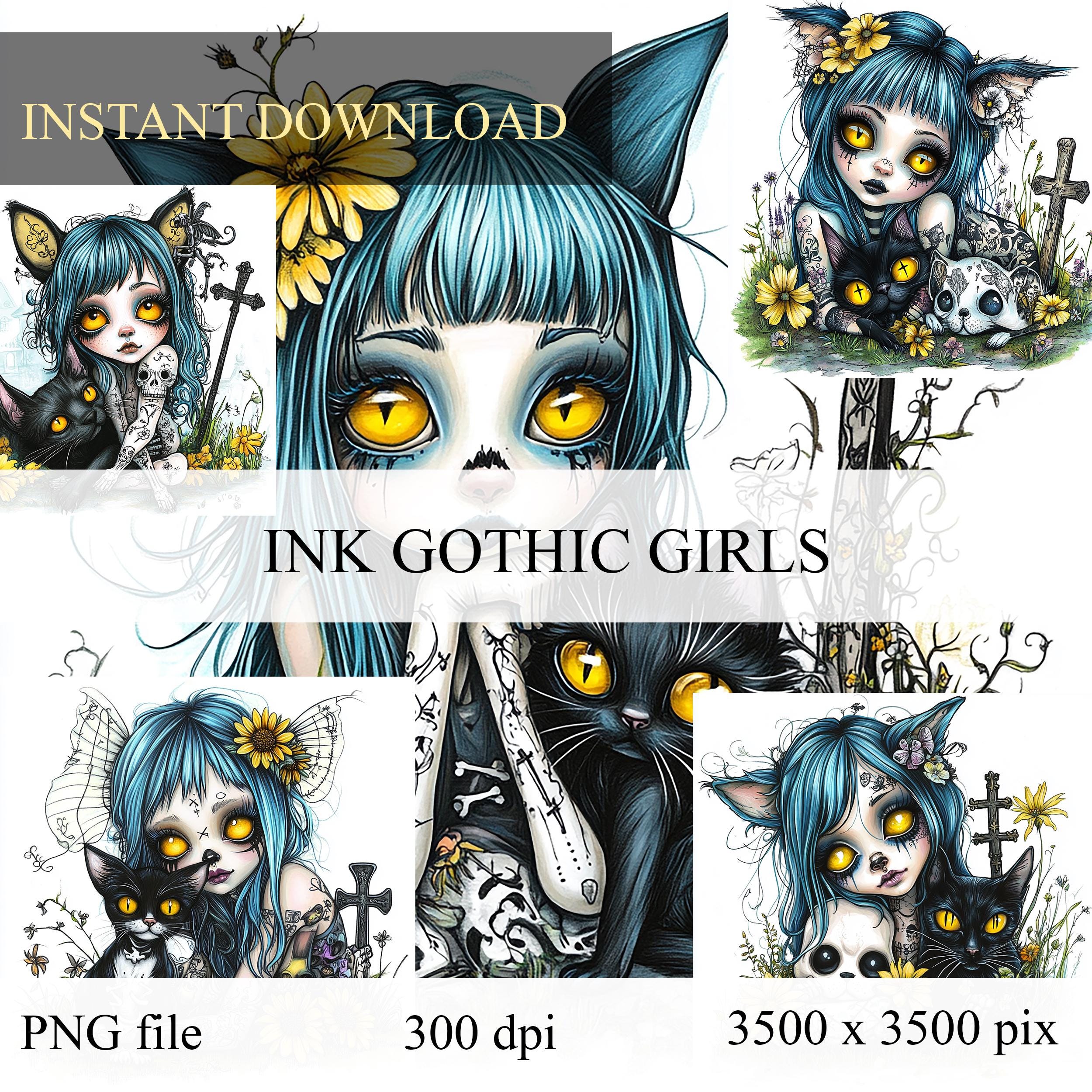Clipart eerie inked gothic girls, junk journal stickers, scrapbooking stickers, junk journal gothic, scrapbook paper, ephemera