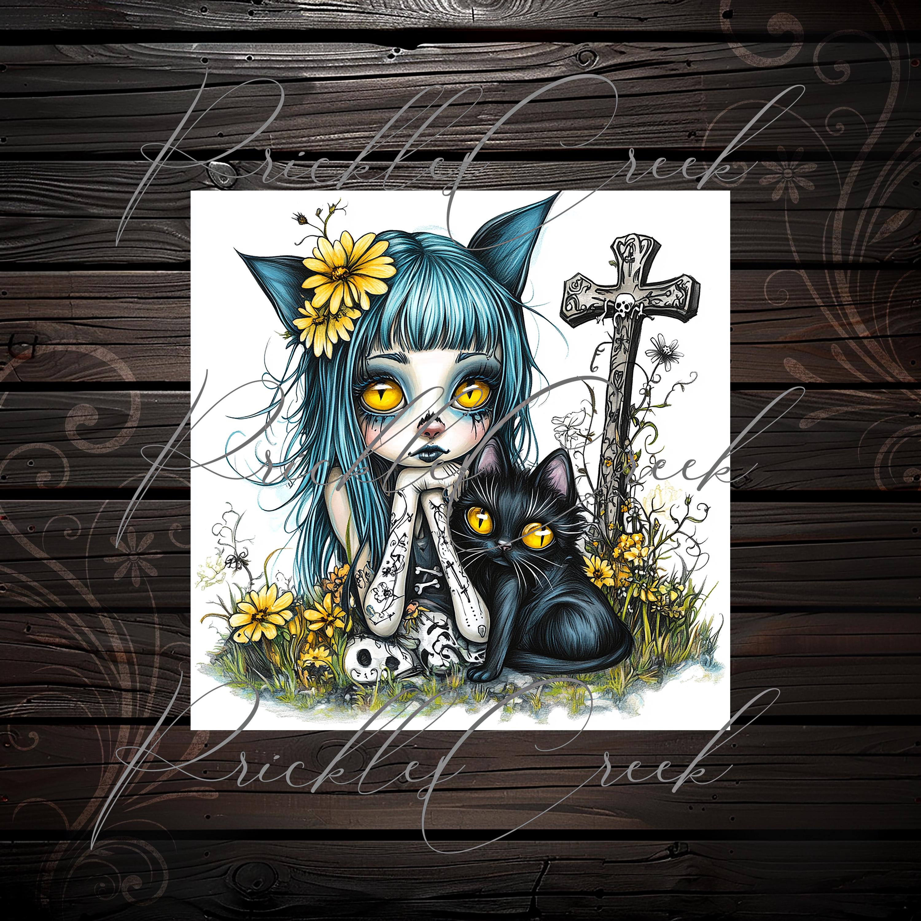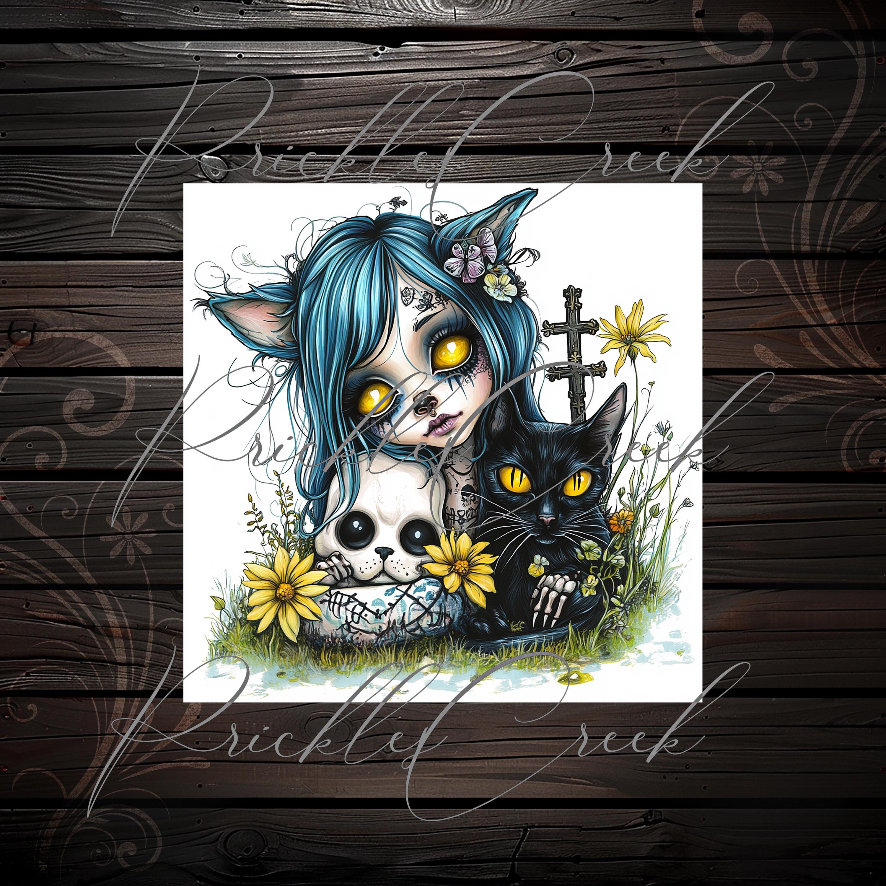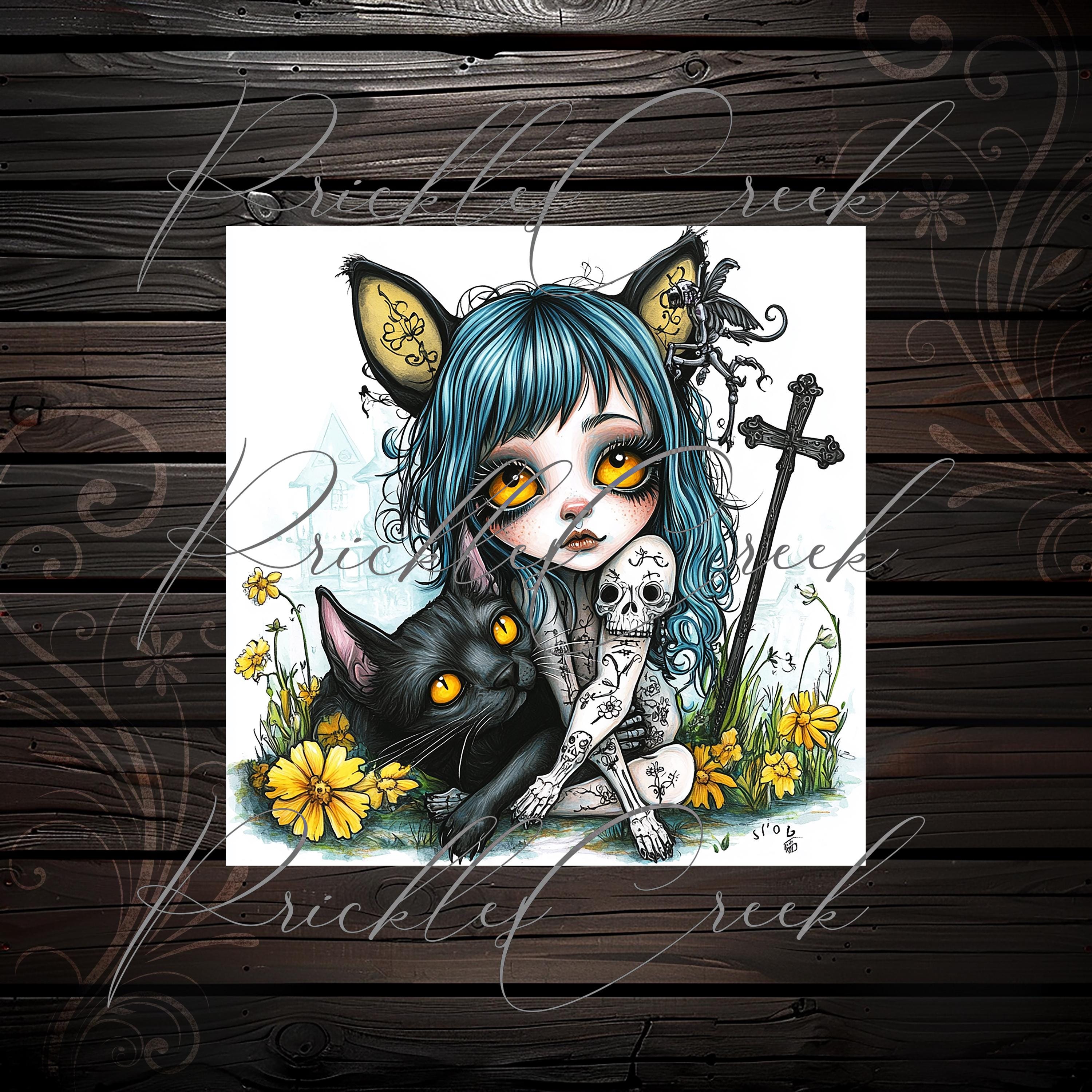 Clipart eerie inked gothic girls, junk journal stickers, scrapbooking stickers, junk journal gothic, scrapbook paper, ephemera