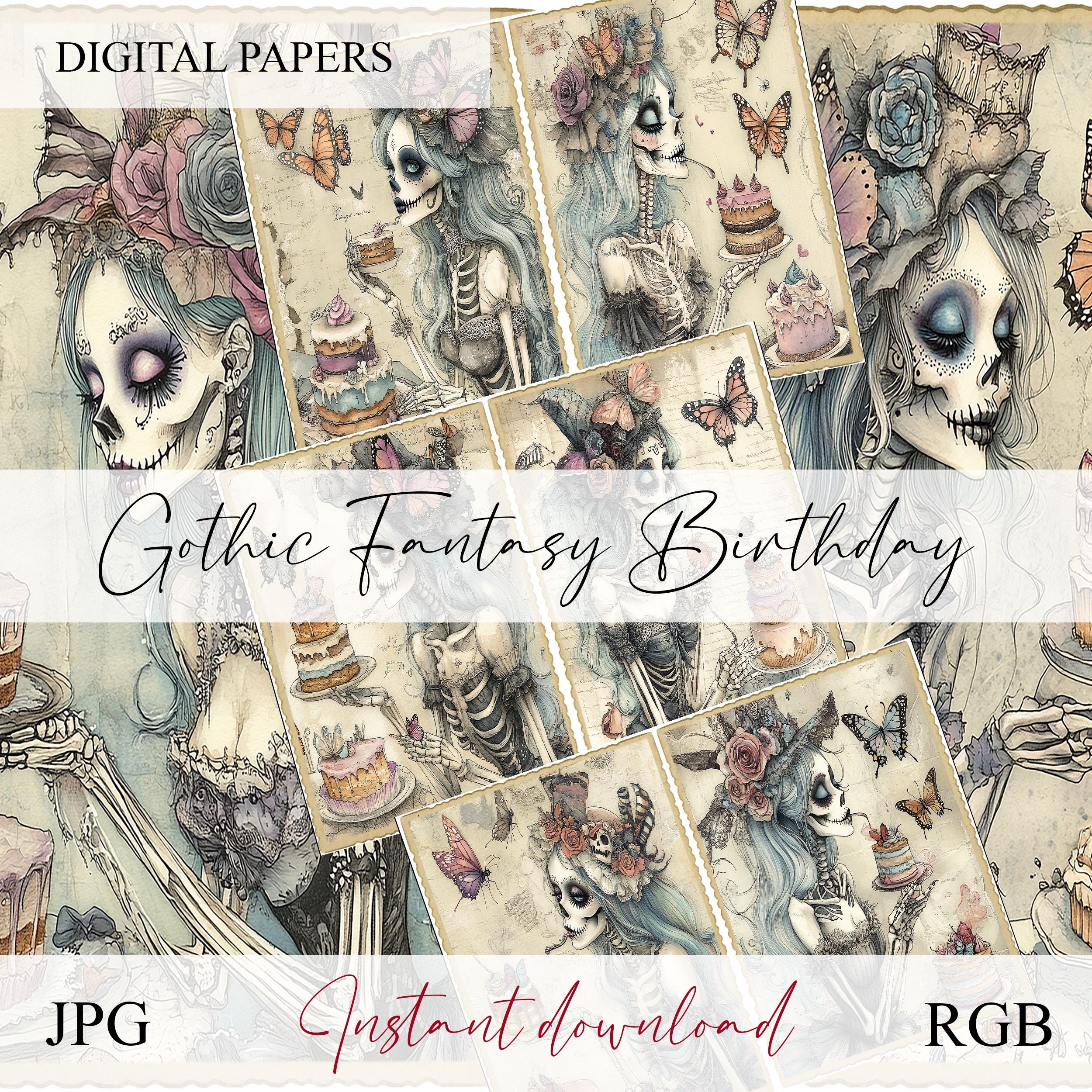 Scrapbooking gothic birthday, scrapbook, junk journal, digital paper, digital papers, ephemera, diary