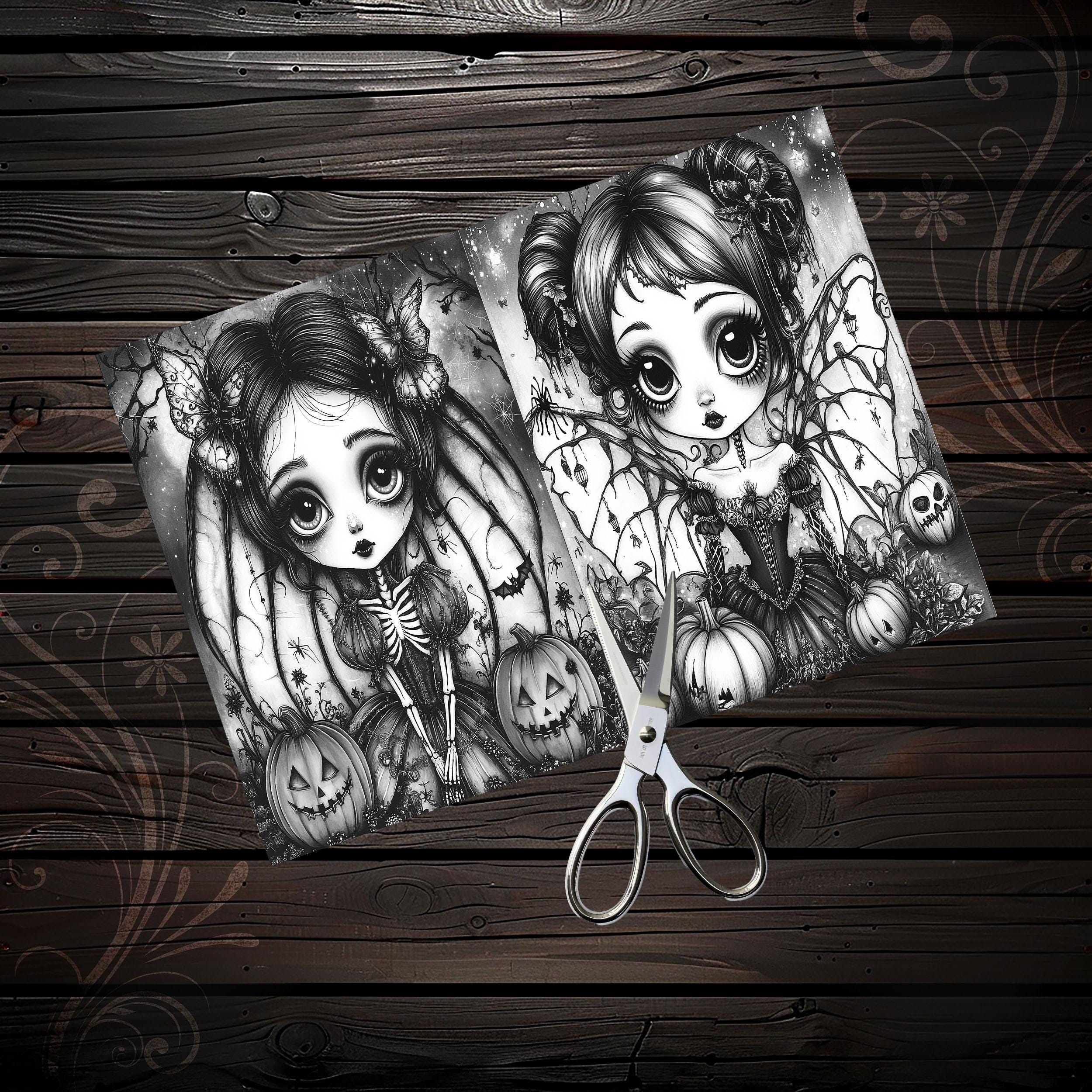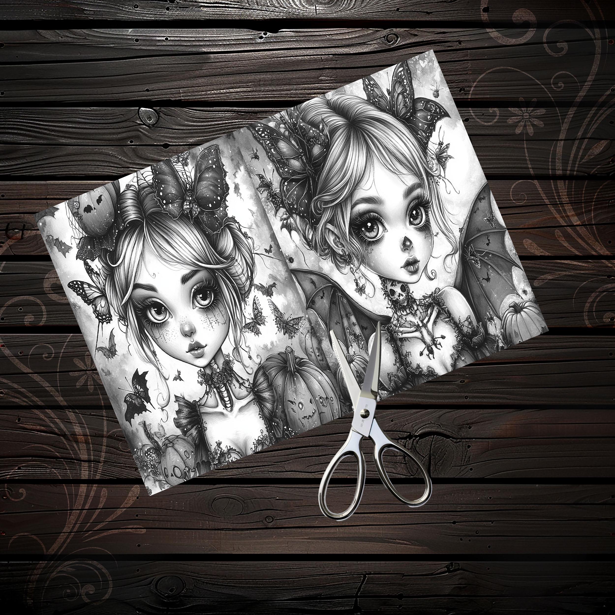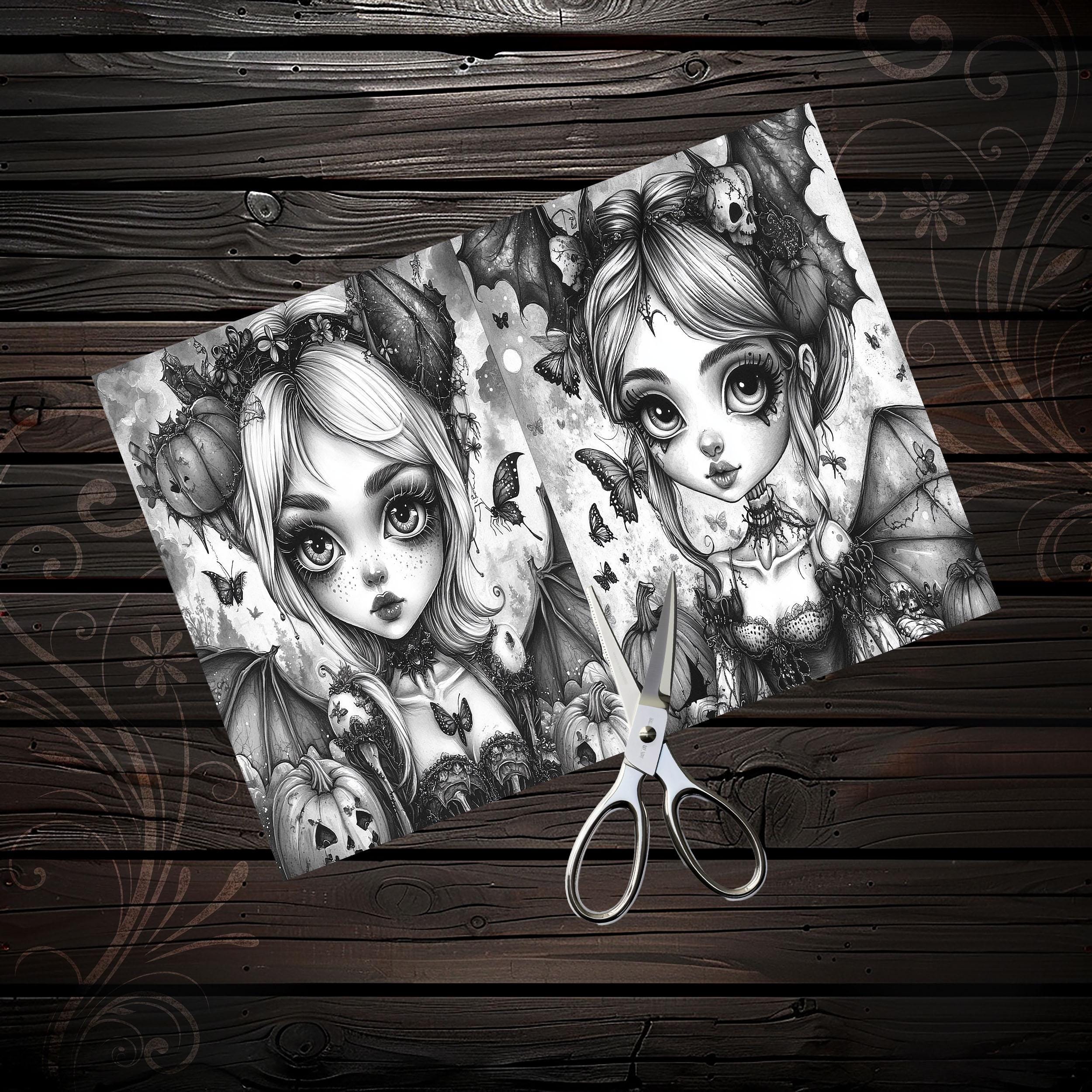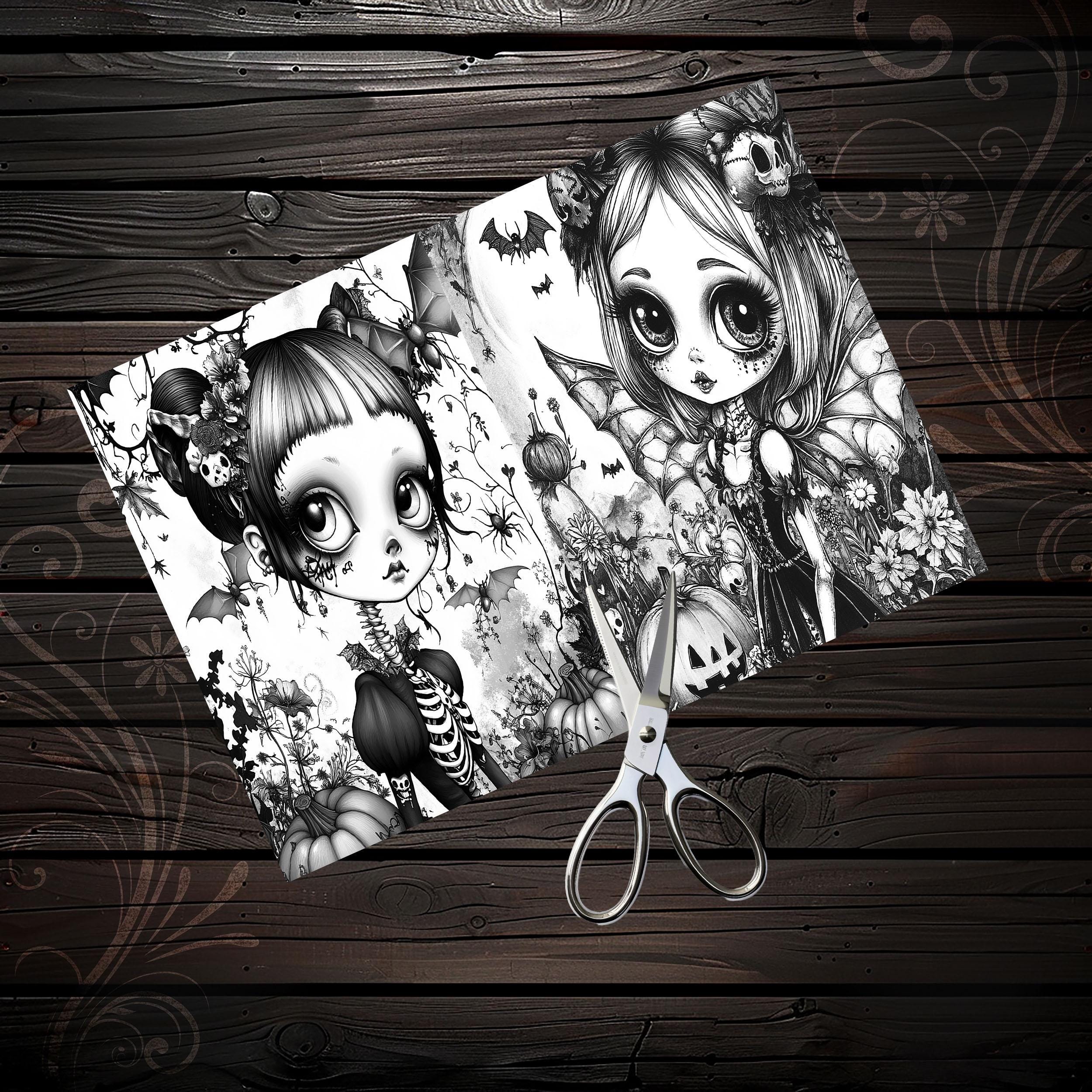 Scrapbook coloring book cute gothic girls, scrapbook, scrapbooking, memory album, ephemera, diary, printable papers, digital paper