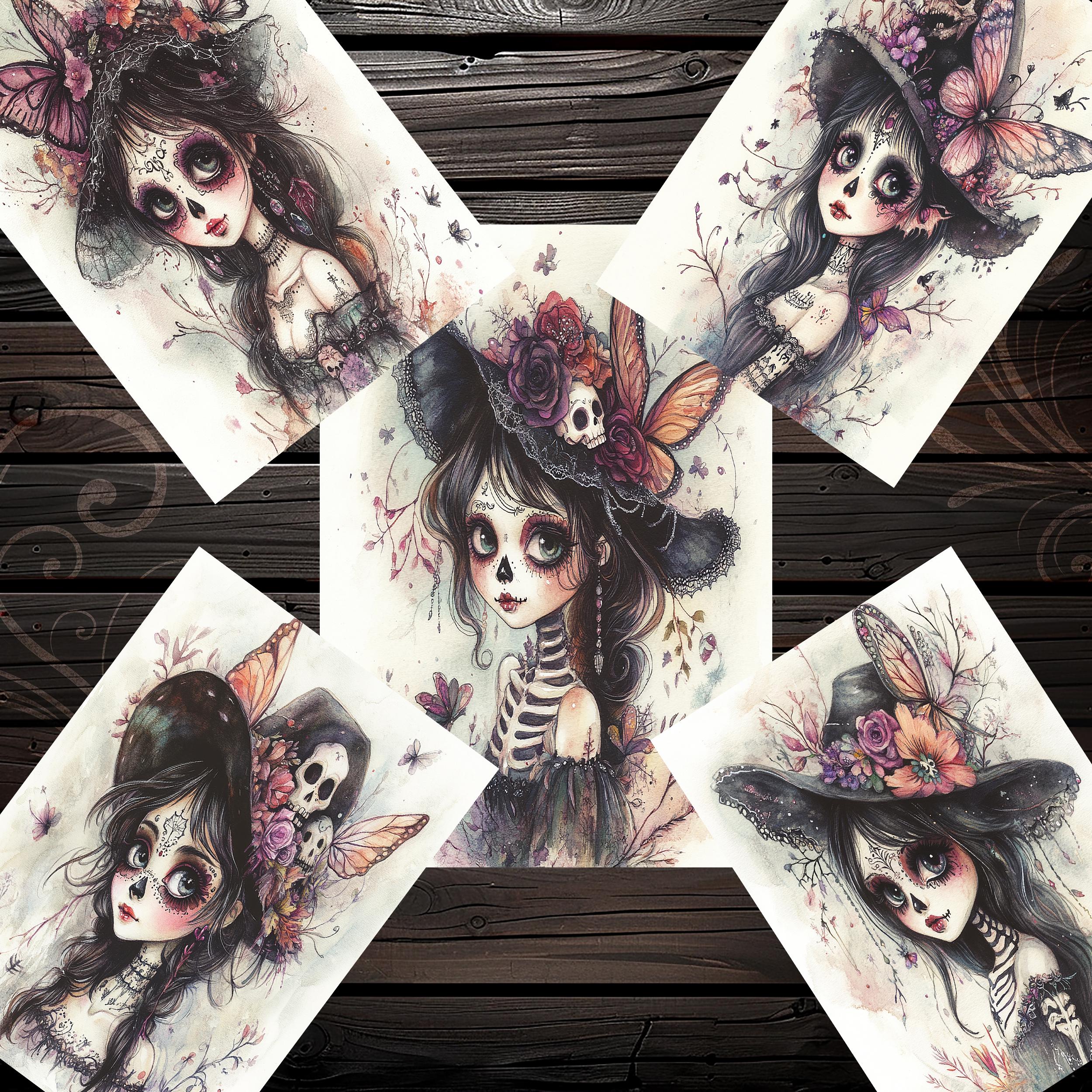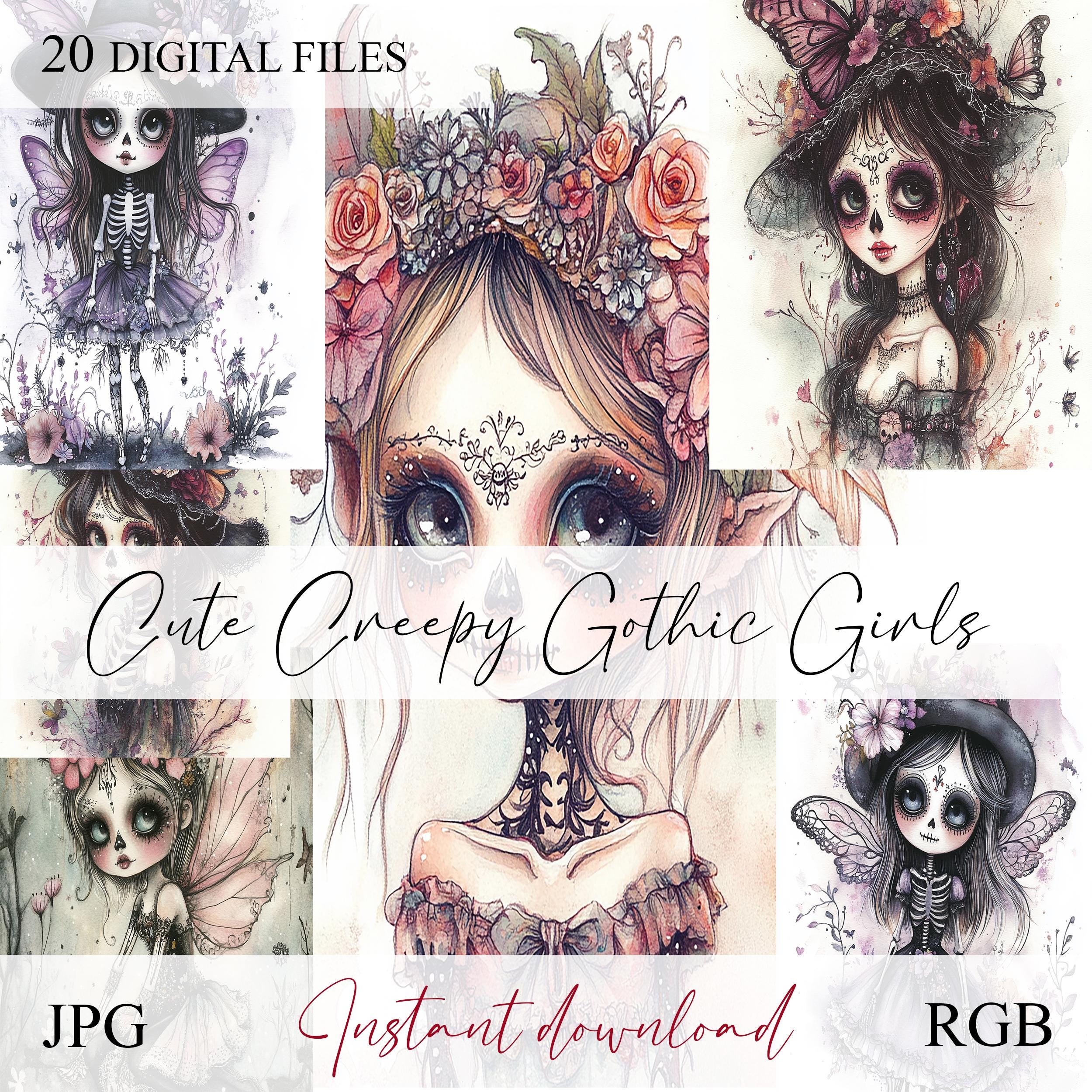 Scrapbook "Creepy Gothic Girls" printable papers, scrapbook, scrapbooking kit, junk journal, digital paper, ephemera, cute reaper, gothic